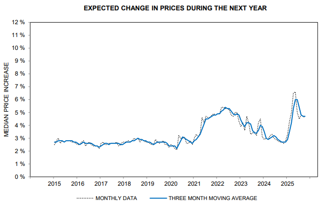 The chart above displays proportions of respondents reporting various political affiliations. There is substantial monthly variation in political affiliation in survey participants, as is the case for all socio-demographic characteristics. However, overall proportions of reported party affiliation are relatively stable over the years, which indicates that time trends in consumer sentiment or economic views are not an artifact of shifts in nonresponse on this dimension. Proportions of the three political groups in 2025 are generally within the historical ranges seen since 2017.