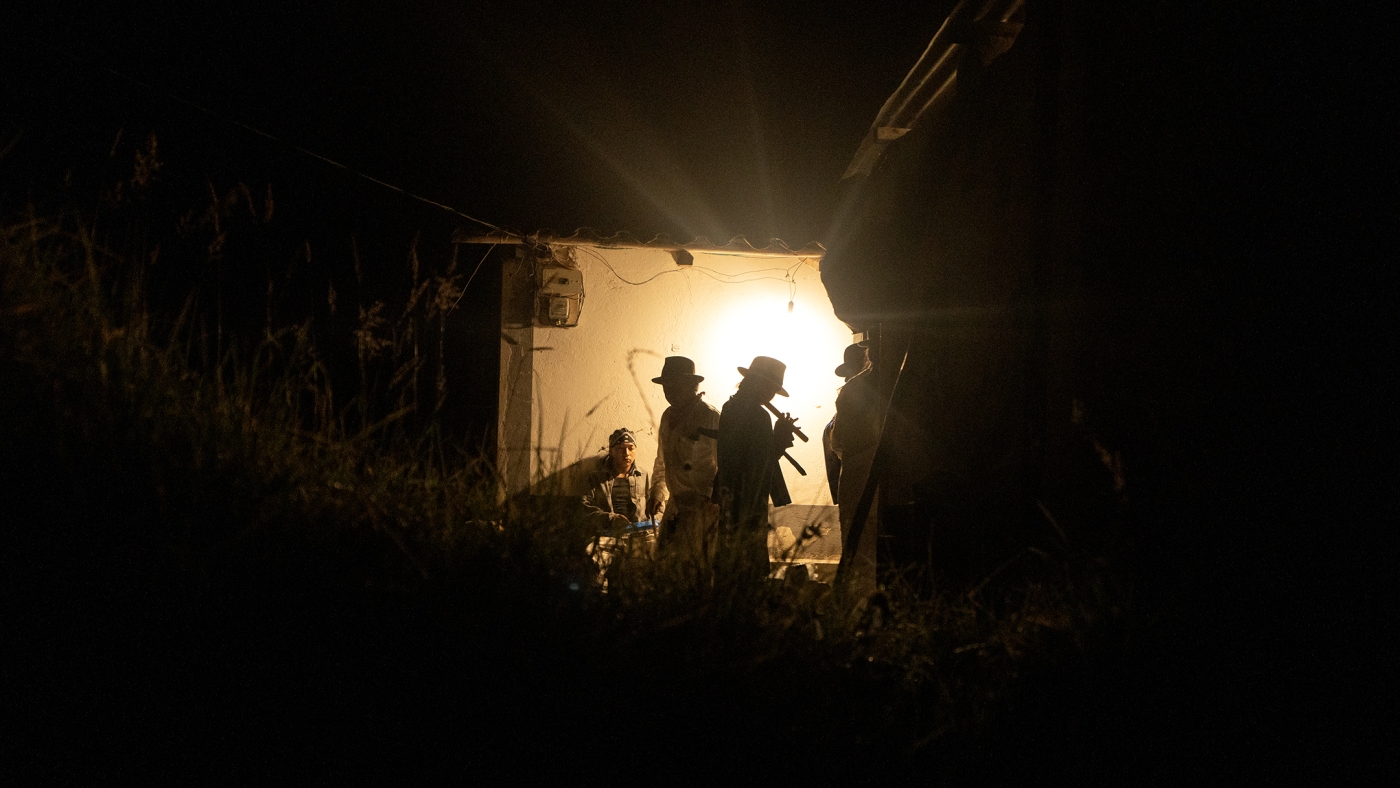 La orquesta de cumbia Los Cumbancheros se prepara para presentarse cerca de la ciudad de Riobamba, en la región andina de Ecuador, el 31 de diciembre de 2023.