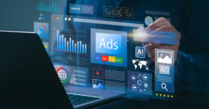 Digital marketing dashboard on a laptop showing fluctuating ad spend metrics and performance trends, reflecting shifts in online advertising growth.