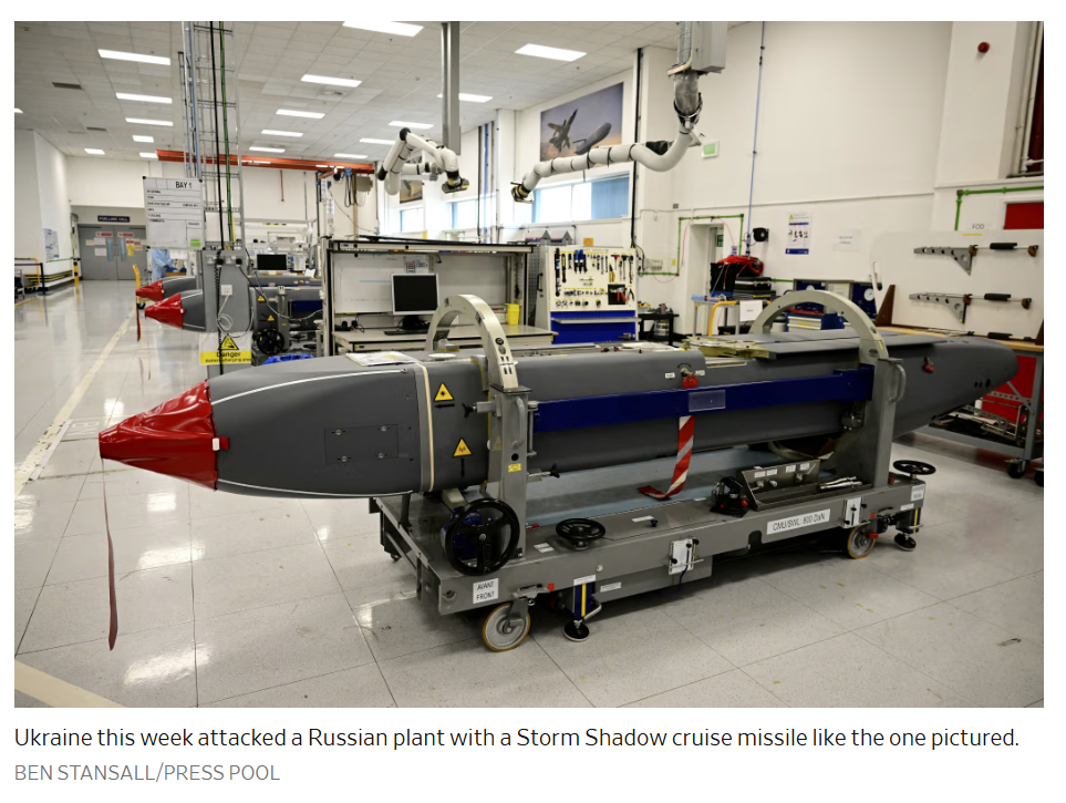 The Wall Street Journal reports U.S. Lifts Key Restriction on Ukraine’s Use of European Long-Range Missiles